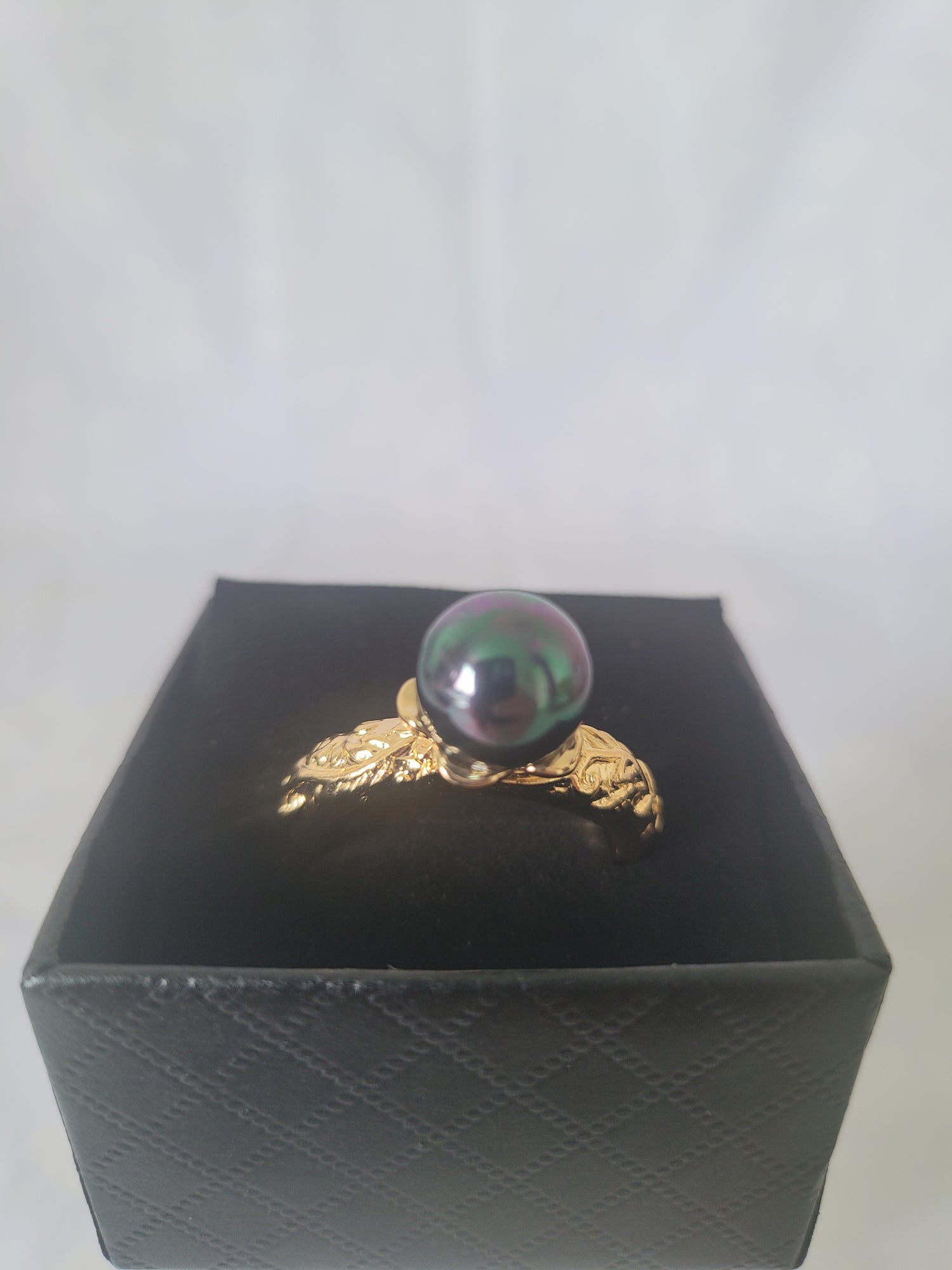 Elegant black peacock pearl with a Gold band. Teine Aulelei is a great addition