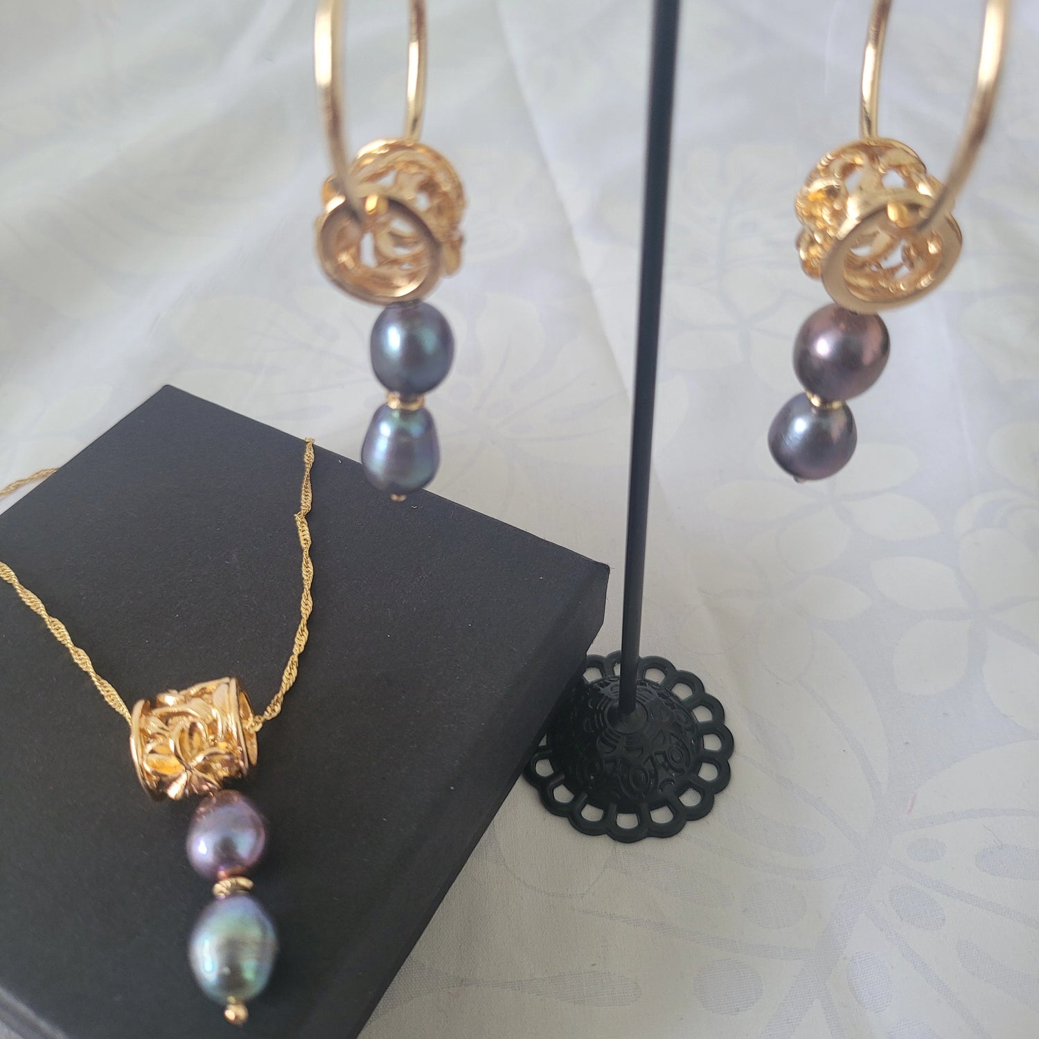Exquisite black Hawaiian freshwater pearls. Linita is an amazing necklace and earring set that elevates styles